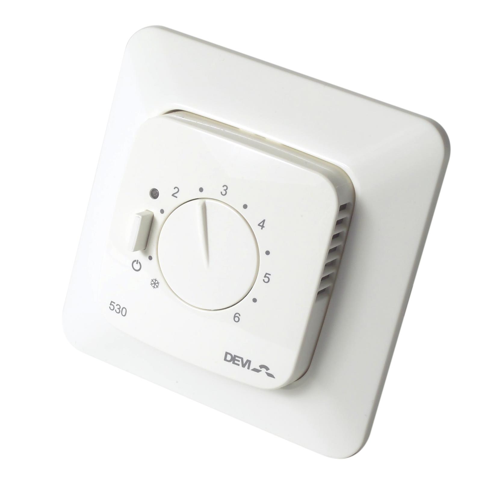 Терморегулятор Devi Devireg 530, +5...45 °C, механічний, вбудований, дротовий датчик, 15A, 230V, білий