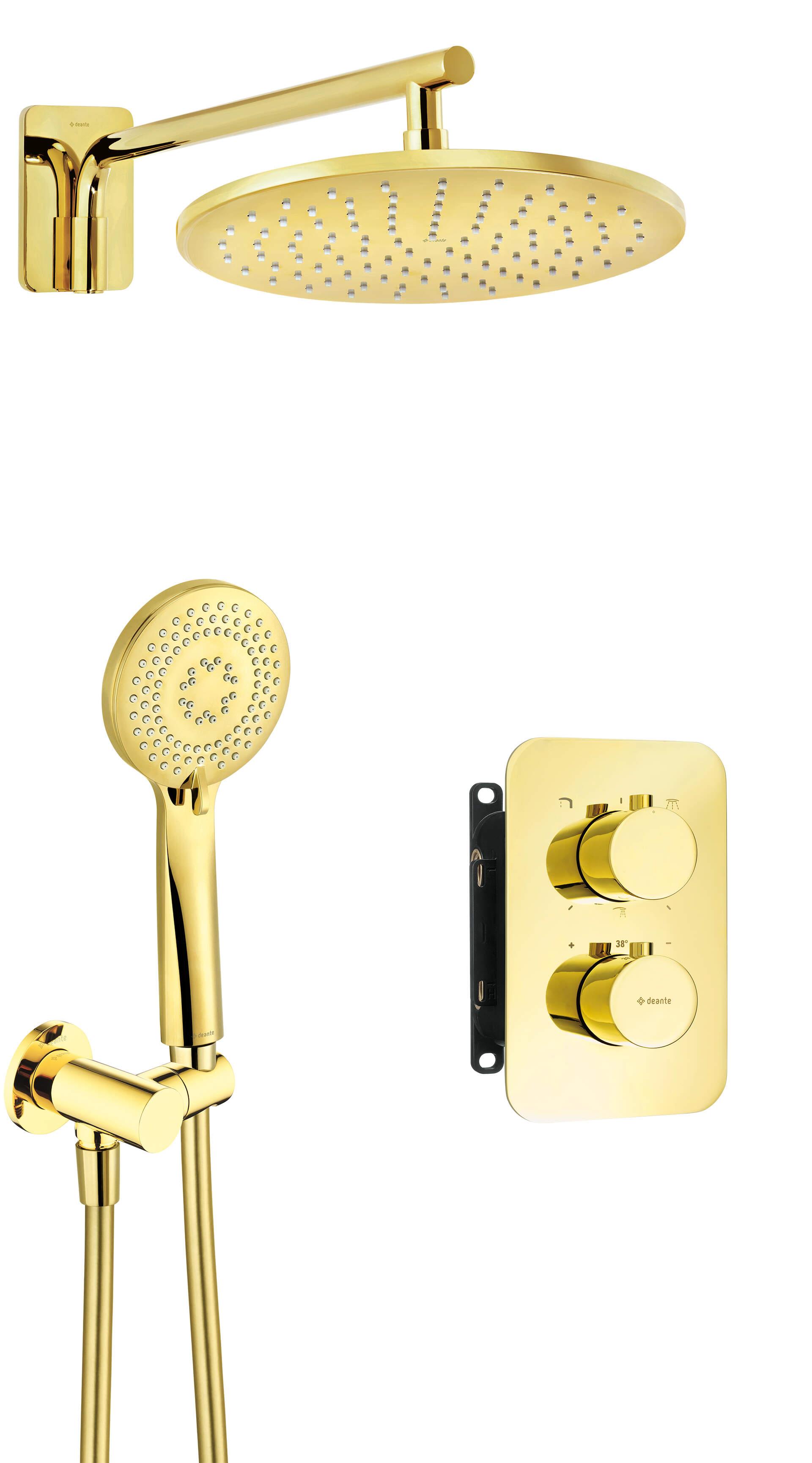 Душевий набір Deante Box з термостатичним змішувачем, верхній душ круг., лійка, кріпл. - прихованого монтажу, золотий
