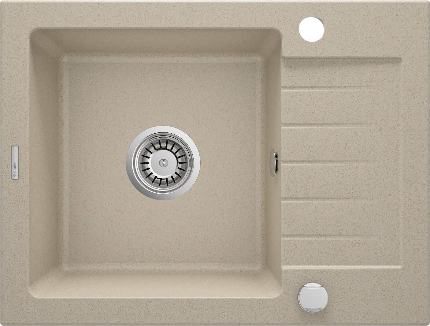 Мийка кухонна Deante Zorba, граніт, прямокутник, з крилом, 580х440х164мм, чаша - 1, накладна, пісок