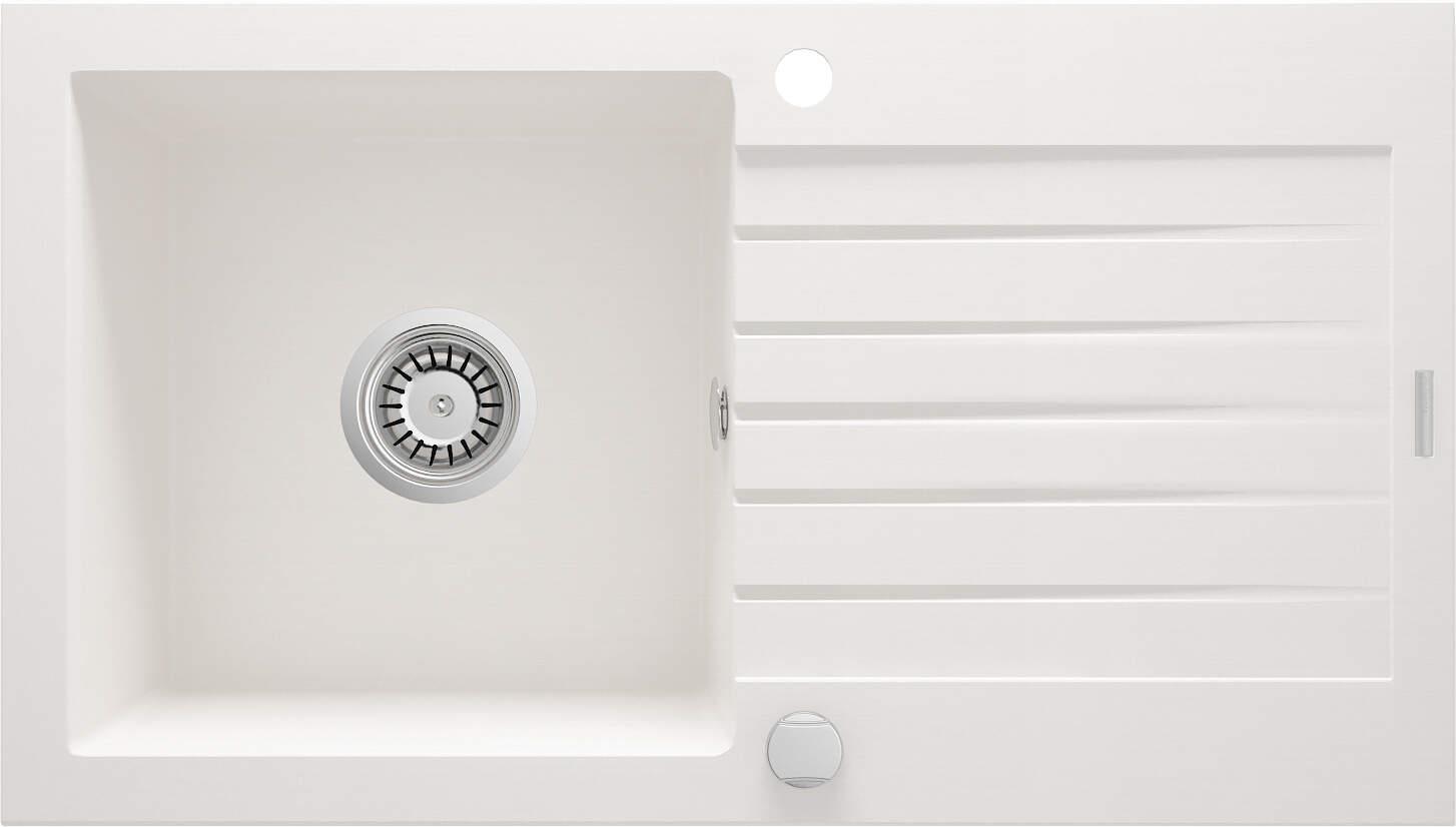 Мийка кухонна Deante Zorba, граніт, прямокутник, з крилом, 760х440х160мм, чаша - 1, накладна, алебастр