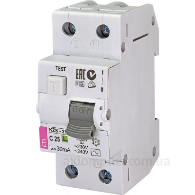 Диференційний автоматичний вимикач ETI, KZS-2M C 25/0,03 тип AC (10kA) Дифференциальный автоматический выключатель, 2 модуля