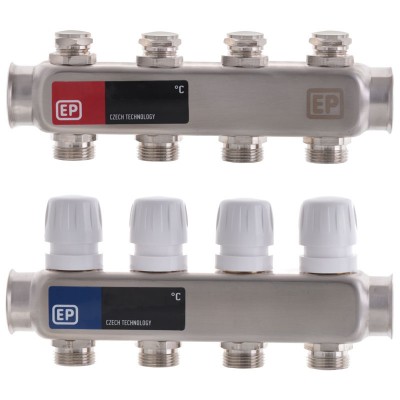 - EUROPRODUCT Колектор нерж. для теплої підлоги(євроконус в компл.) 4 вих *1 х 3/4, EP4980