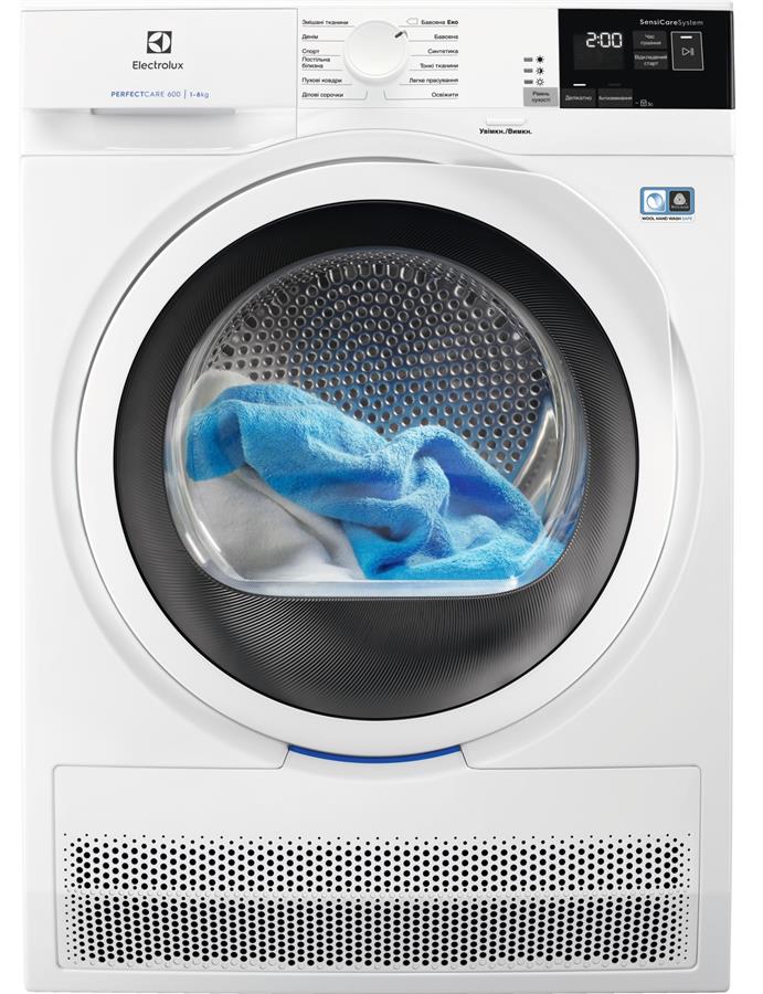 Сушильна машина Electrolux конденсаційна, 8кг, B, 63см, дисплей, білийМаксимальне завантаження: 8.0 кг