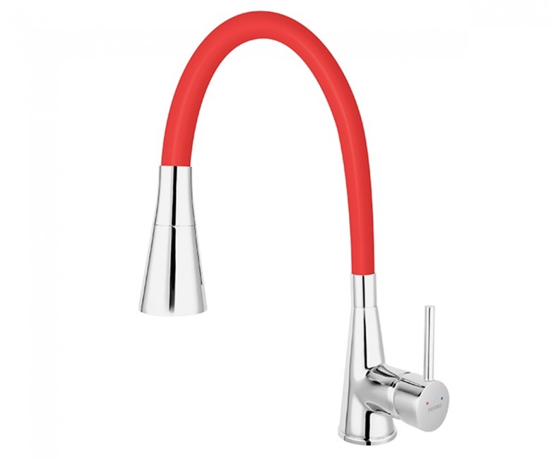 Опис FERRO ZUMBA II Змішувач для мийки з обертовим гнучким виливом, червоний BZA42R