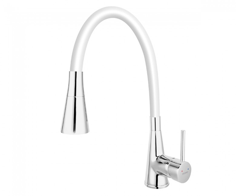 Опис FERRO ZUMBA II Змішувач для мийки з обертовим гнучким виливом, білий BZA42W