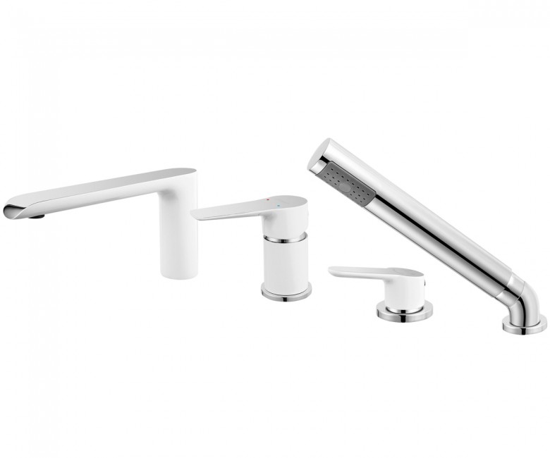 Колір хром-білийФОТО, ВІДЕО, 3D FERRO Змішувач ADORE для ванни з висувною душовою ручкою BDR11A