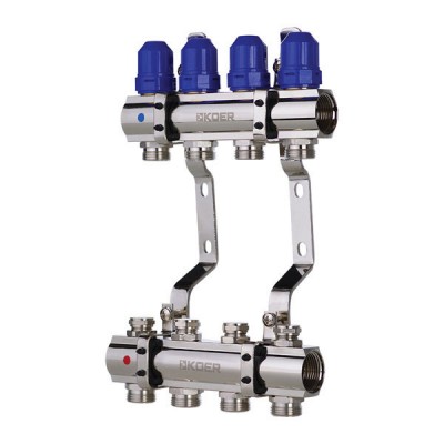 - KOER Колектор для теплої підлоги, латунь,(євроконус в компл.) 4 вих *1 х 3/4, KR2641