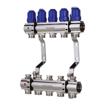 - KOER Колектор для теплої підлоги, латунь,(євроконус в компл.) 5 вих *1 х 3/4, KR2642