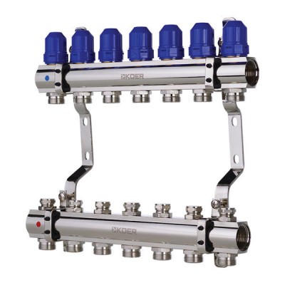 - KOER Колектор для теплої підлоги, латунь,(євроконус в компл.) 7 вих *1 х 3/4, KR2644