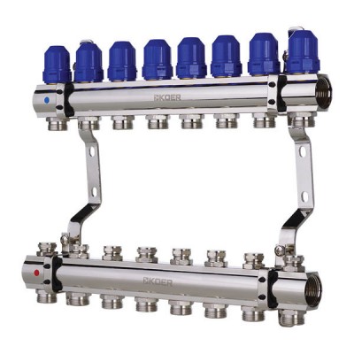 - KOER Колектор для теплої підлоги, латунь,(євроконус в компл.) 8 вих *1 х 3/4, KR2645