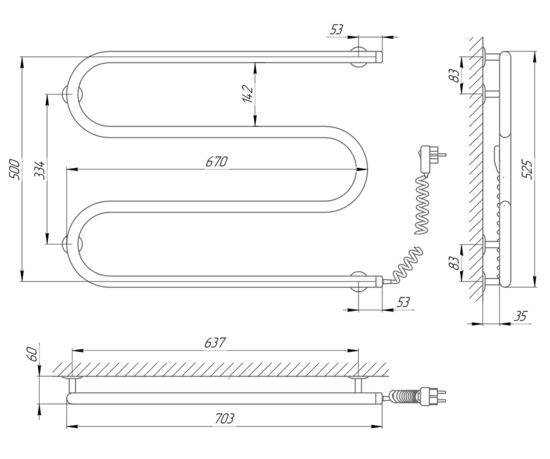 - LARIS Сушарка для рушників Горизонт ЧФ6 1000*600 Е Ліве підкл. R3 77700080
