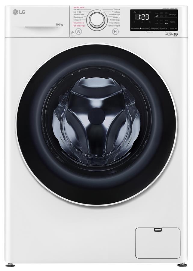Пральна машина LG фронтальна, 10,5кг, 1400, A+++, 57см, дисплей, пара, інвертор, білий