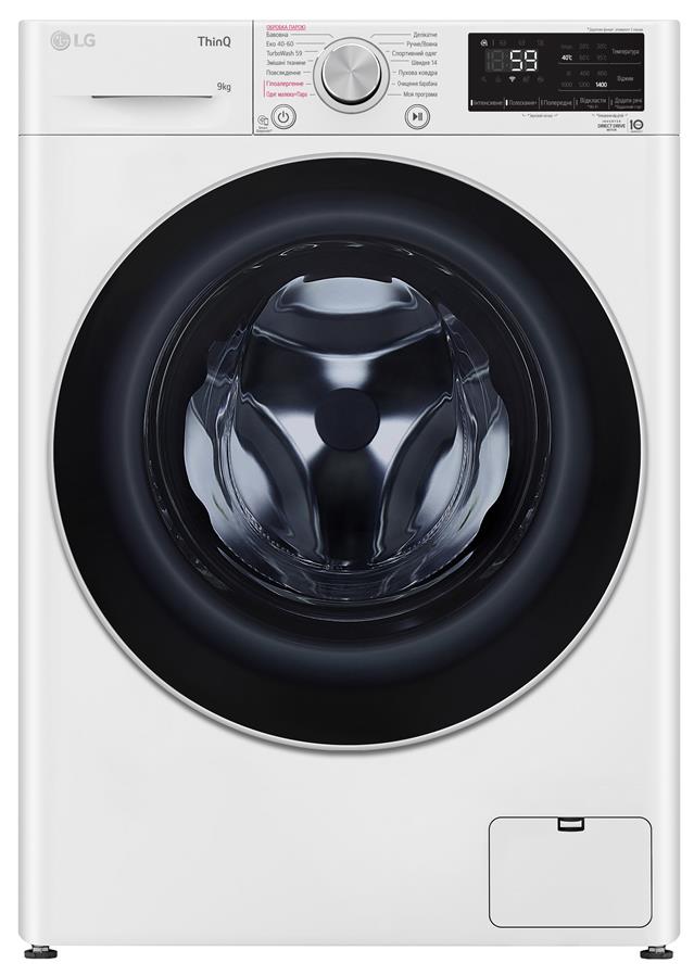 Пральна машина LG фронтальна, 9кг, 1400, A+++, 57см, дисплей, пара, інвертор, білий