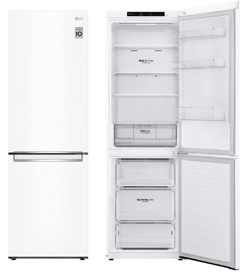 Холодильник LG з нижн. мороз., 186x60x68, холод.відд.-234л, мороз.відд.-107л, 2дв., А++, NF, інв., диспл внутр., зона свХолодильник LG з нижньою морозильною камерою