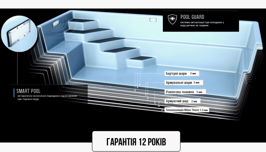 наличие гидроизоляционного слоя позволяет защитить чашу от воздействия ультрафиолета в случае отсутствия павильона;