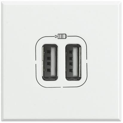 USB-зарядное устройство 5 В постоянного тока (с 2 разъемами USB) для быстрой зарядки одного электронного устройства (мобильных телефонов, смартфонов, планшетов или подобных) до 2400 мА или одновременного заряжания двух устройств до 1200 мА - 110 ÷ 230 В АС, 50 ÷ 60 Гц питания - 2 модуля - белый