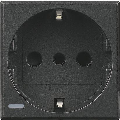 Bticino Axolute Розетка 2К + З, 10/16 А, із захисними шторками, колір антрацит, німецький стандартРозетка P30 2П + З 16A 250 В АС с боковыми контактами и центральным контактом заземления - для штепсельных вилок немецкого стандарта и штепсельных вилок 10A с совмещенными штырьками - межосевое расстояние 19 мм - экранированные контакты (доступны со светодиодом для сигнализации наличия напряжения) - антрацит