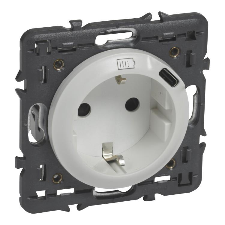 Зарядное устройство прогрессивного стандарта USB Type C 5B 1,5 А, где сам USB-разъем интегрированный в силовую электрическую розетку и не требует дополнительных соединений при монтаже.