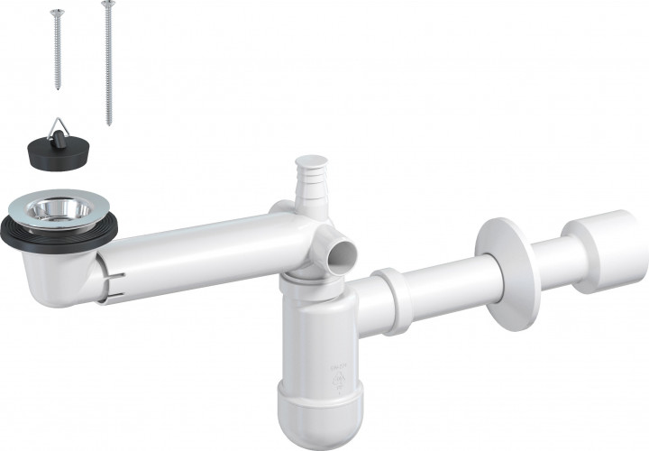 - PREVEX Універсальний комплект: сифон Smartloc телескопічний для одинарної кухонної мийки d114, автомат, 2 гвинта, 2 переливи, зливна гофра d50/40, злив пральної 41R13919