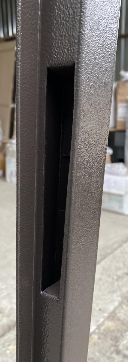 Розміри (ширина*висота) 960*2050 Колір Фарбування RAL8019 Накладки* 2 листа металу Товщина металу полотна* 0,5/0,5 мм Товщина полотна* 30 мм Наповнення полотна* пінопласт Товщина коробки* 30 мм (гнутий профіль) Фурнітура* 2 зовнішні петлі, ручка на планці. ЗАМОК Верхній* - ЗАМОК Нижній* Циліндровий