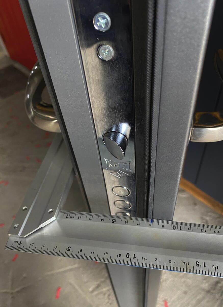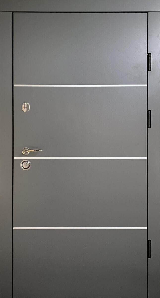 Розміри (ширина*висота) 960*2050 Колір Антрацит + алюмінієві молдинги Накладки* 16 мм композитна касета /26 мм мдф в середині Товщина металу полотна* 1,2 мм Товщина полотна* 96 мм Наповнення полотна* мінвата Товщина коробки* 100 мм (утеплений мінватою) Фурнітура* 3 зовнішні петлі, утоплена боненакладка, ручка на розетці, антизрізи, поріг з нерж.сталі, ексцентрик , терморозрив (корок 4 мм), Торець полотна зашитий МДФ ЗАМОК Верхній* "Сейфовий KALE 252" ЗАМОК Нижній* "Циліндровий KALE 257 + циліндр KALE "