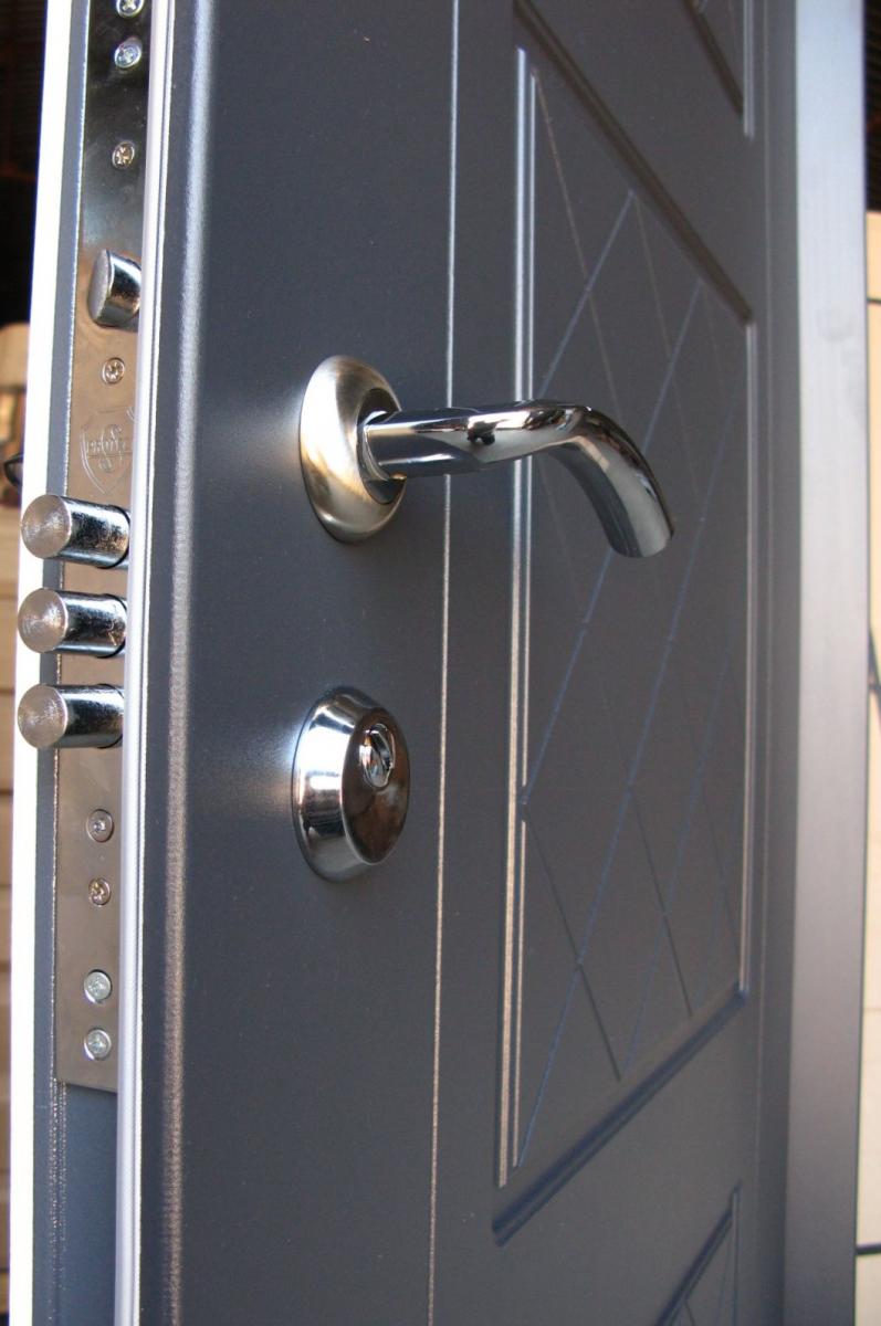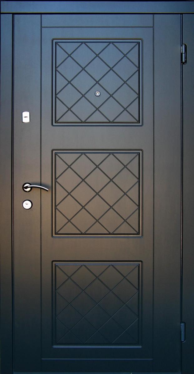 Розміри (ширина*висота) 860*2050 Колір Графіт/Білий сатин Накладки* 10/10 мм, декор з 2 сторін Товщина металу полотна* 1,2 мм Товщина полотна* 75 мм Наповнення полотна* мінвата Товщина коробки* 75 мм (труба 60х40+ полоса 2мм+ термоміст 10мм) Фурнітура* 2 зовнішні петлі, ручка на розетці, вічко, євроущільнювач ЗАМОК Верхній* Сувальдний Аvers 96/S6 (або аналог) ЗАМОК Нижній* " Циліндровий Avers Т-52 (або аналог)