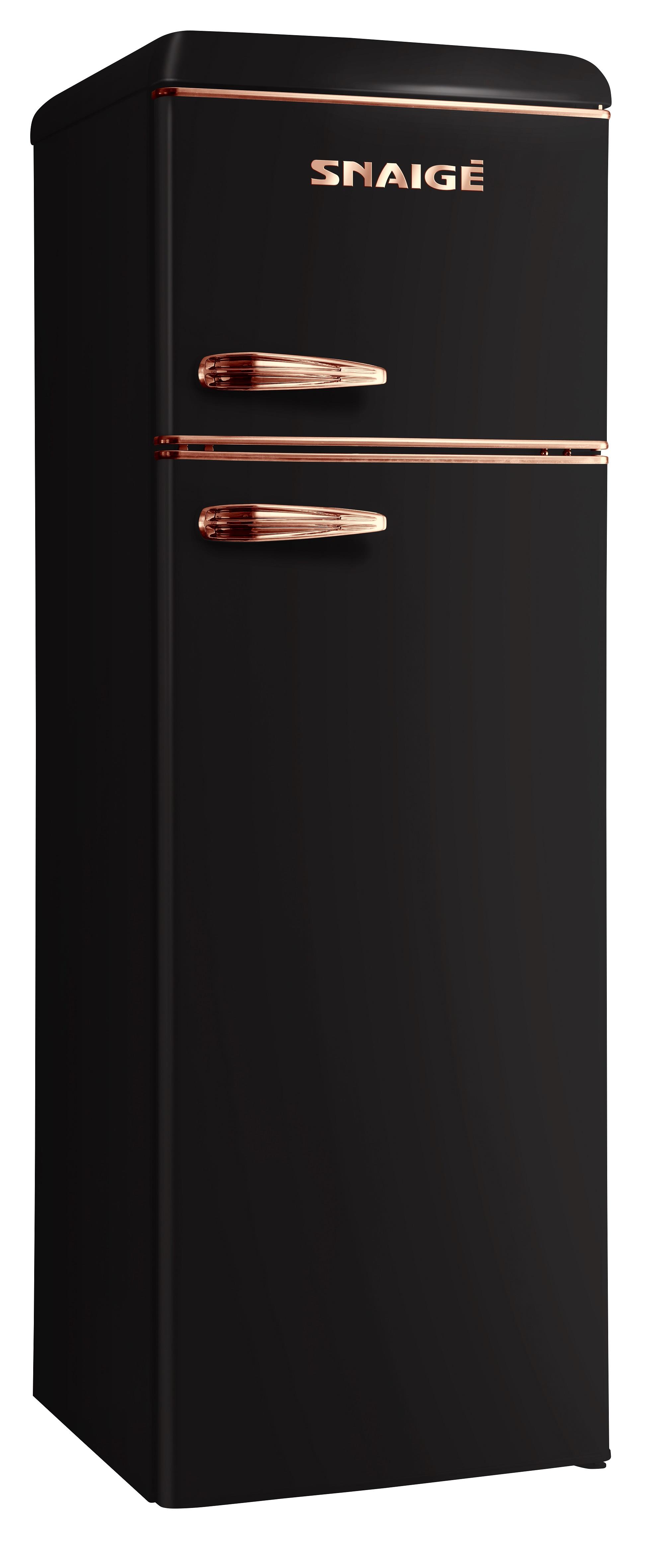 Холодильник Snaige з верхн. мороз., 172.5x63x56, холод.відд.-201л, мороз.відд.-57л, 2дв., A++, ST, retro, чорний-мідь
