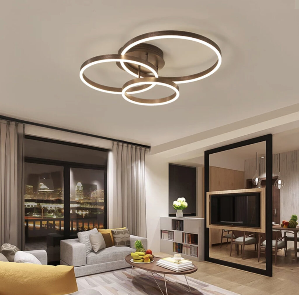 Тип: люстра Номінальна потужність, Вт: 51-80 Діаметр \ ширина \ довжина, мм: 401-600 Колір: кавовий \ коричневий Гарантія: від виробника Стельова серія люстр Anelli виконана з металевого каркасу в кавовому кольорі із вбудованим Led на 75 ват. Діаметр люстри складається з 3-х кілець 30 см 40 см 50 см.- Розміри: 30 / 50 см.