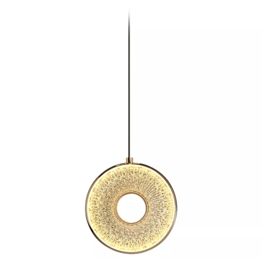 Підвісна люстра BROOM LAMP виконана з металевого каркасу в золотому кольорі з вбудованим Led на 15 ват., з 3-ма режимами світла 3000 k 4500 k 6000 k. Мінімальна висота підвіски 30 см., максимальний опуск 1,5 метра, діаметр світильника 20 см.