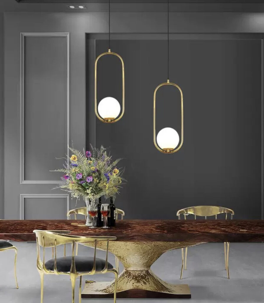 Підвісна люстра на одну лампу Ball by LUX виконана в металевому каркасі бронзового кольору. Мінімальна висота 40 см. , Діаметр 18 см . Висота регулюється за рахунок троса.