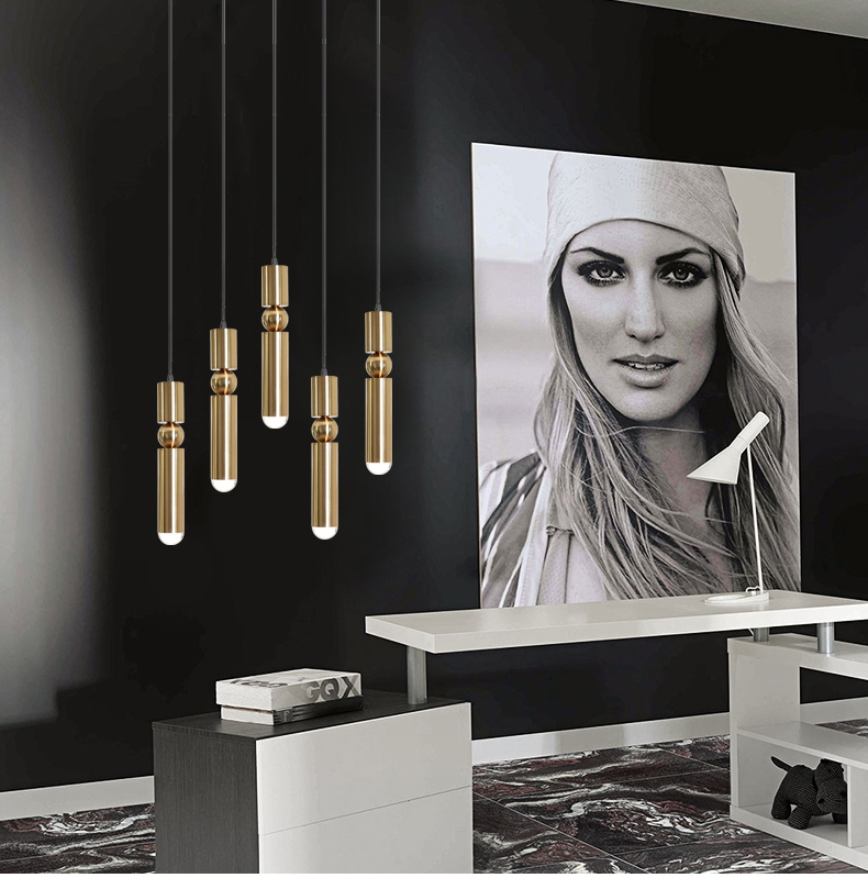 Підвісна люстра Fulcrum виконана з металевого каркасу у кольорі бронза. Мінімальна висота 40 см. діаметр 5 см . Висота регулюється за рахунок троса.