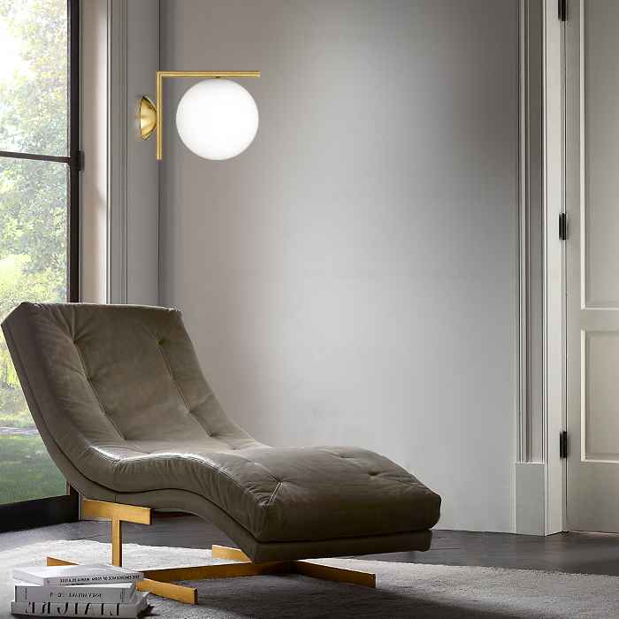Настінна серія Бра IC , виготовлена з металевого каркасу в бронзовому кольорі , з плафоном зі скла . Висота 20 см., Діаметр плафона 20 см., Довжина 25 см.