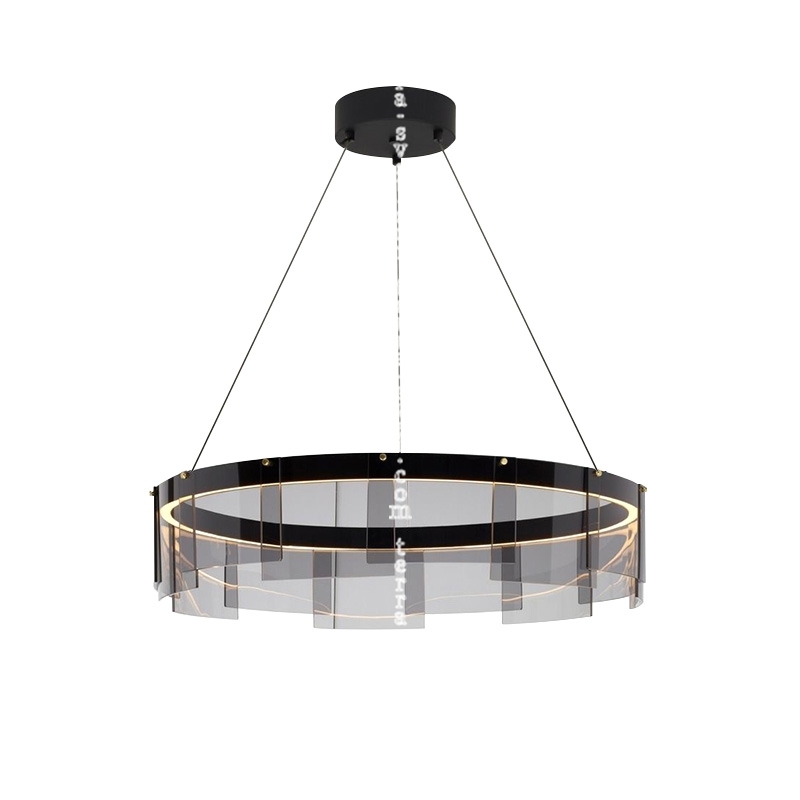Серія тросових люстр One Only Circle Lamp виконана з металевого каркасу в чорному кольорі, з плафоном зі скла кольору графіт. Мінімальна висота гульвіси 40 см., Діаметр 60 см.