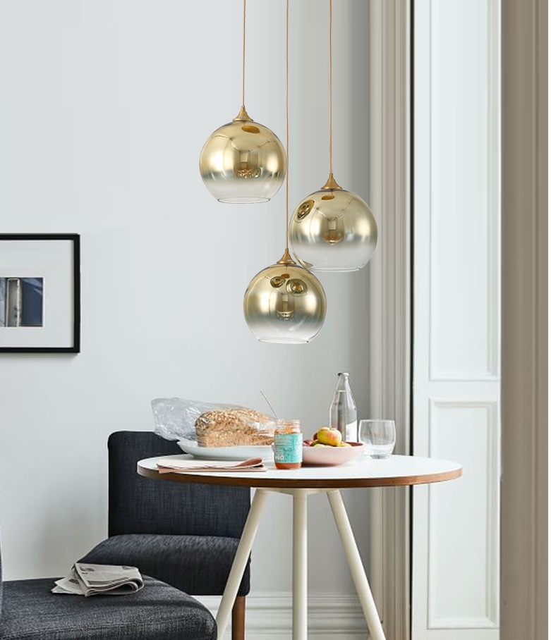 Підвісна серія SCULPTURAL GLASS виконана зі скла з напиленням золота. Мінімальна висота 25 см. , Діаметр 20 см . Висота люстри регулюється за рахунок дроту.