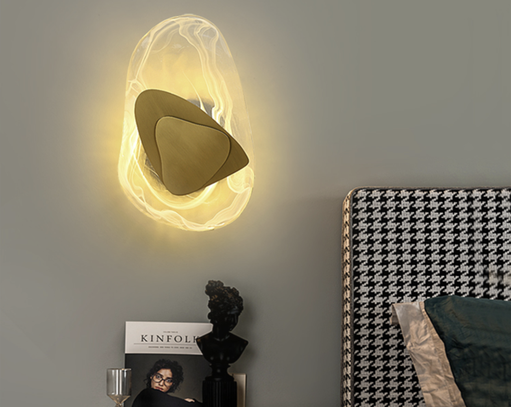 Настінна серія світильників Santal Sconce Lamp виконана з прозорого стелу та металу кольору бронзи.