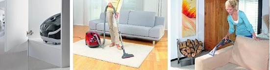 Пылесосы с циклонным фильтром предназначены для сухой уборки и не требуют подготовки перед началом процесса. Данная серия обладает постоянной мощностью всасывания 300 Вт. В процессе работы устройства крупный и мелкий мусор отделяется от общего потока воздуха, благодаря многоступенчатой циклонной системе. Фильтры, используемые для защиты двигателя и очистки исходящего воздуха, допускают влажную очистку по мере загрязнения.
